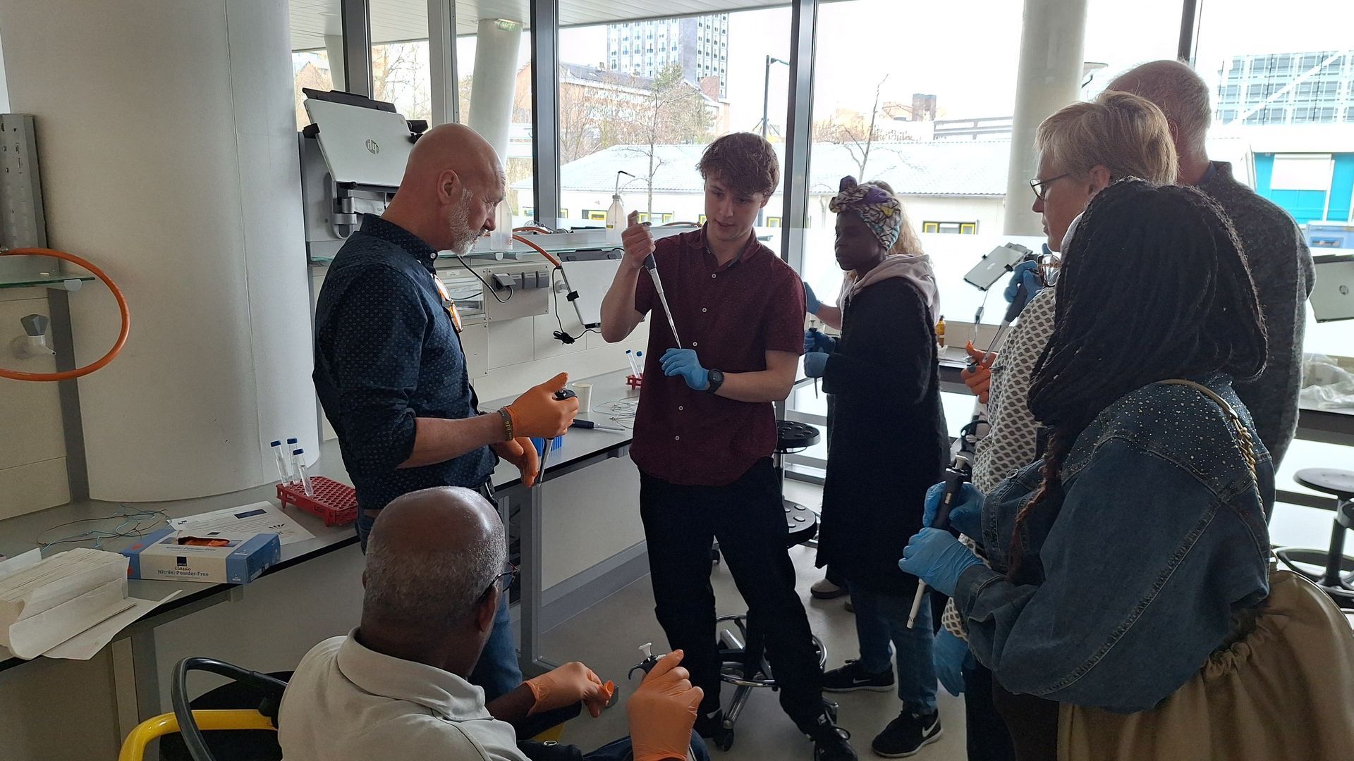 Na deze introducties was het tijd voor een interactieve ervaring in het laboratorium. Deelnemers werden rondgeleid langs verschillende onderzoekslabs en kregen de mogelijkheid om zelf experimenten uit te voeren. Zo mochten zij een gel laden om DNA zichtbaar te maken, terwijl anderen de verschillende cel modellen bekeken onder de microscoop. Als klap op de vuurpijl konden deelnemers hun eigen DNA isoleren en meenemen in een glazen hangertje als souvenir.